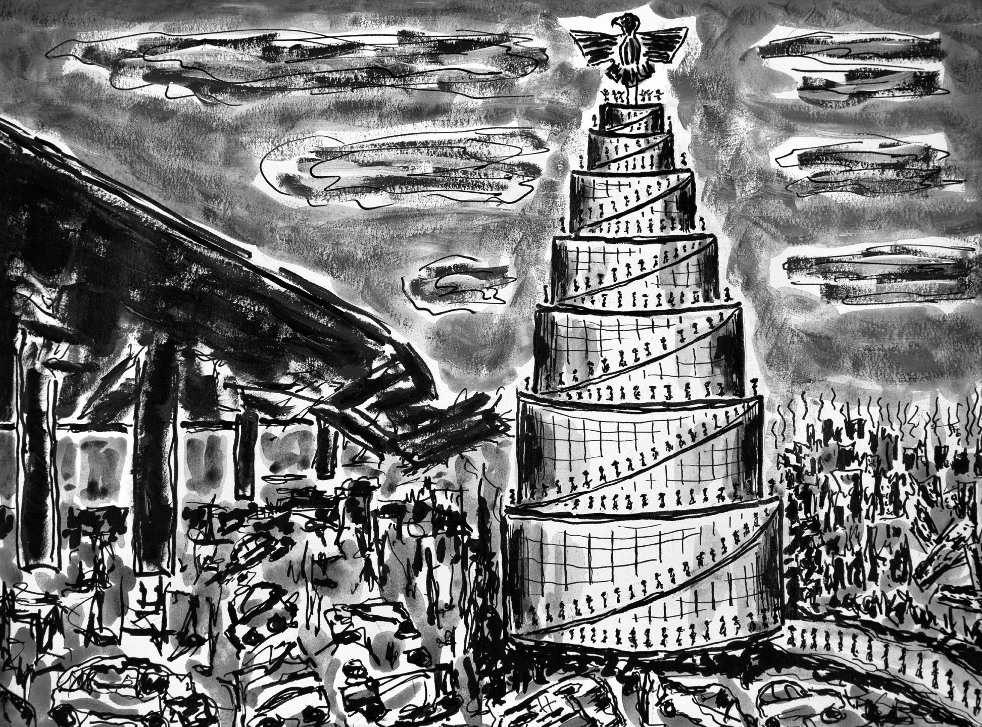 Tower of Babel, 2020, from THE COURSE OF EMPIRE (9"x12")